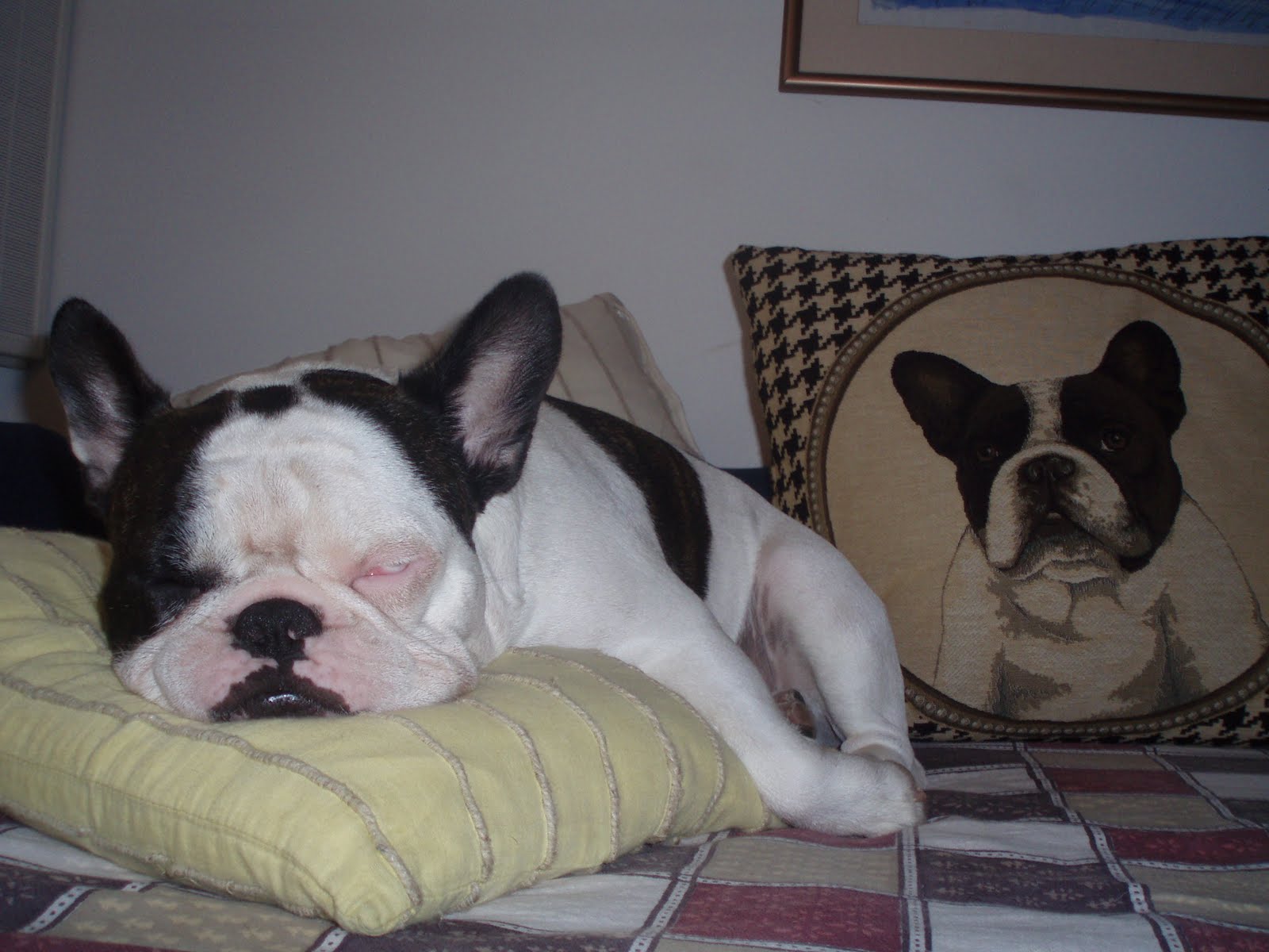 Olhem que fofura seus frenchies, Marie e Zé, descansando em suas almofadas chiquérrimas!!!!