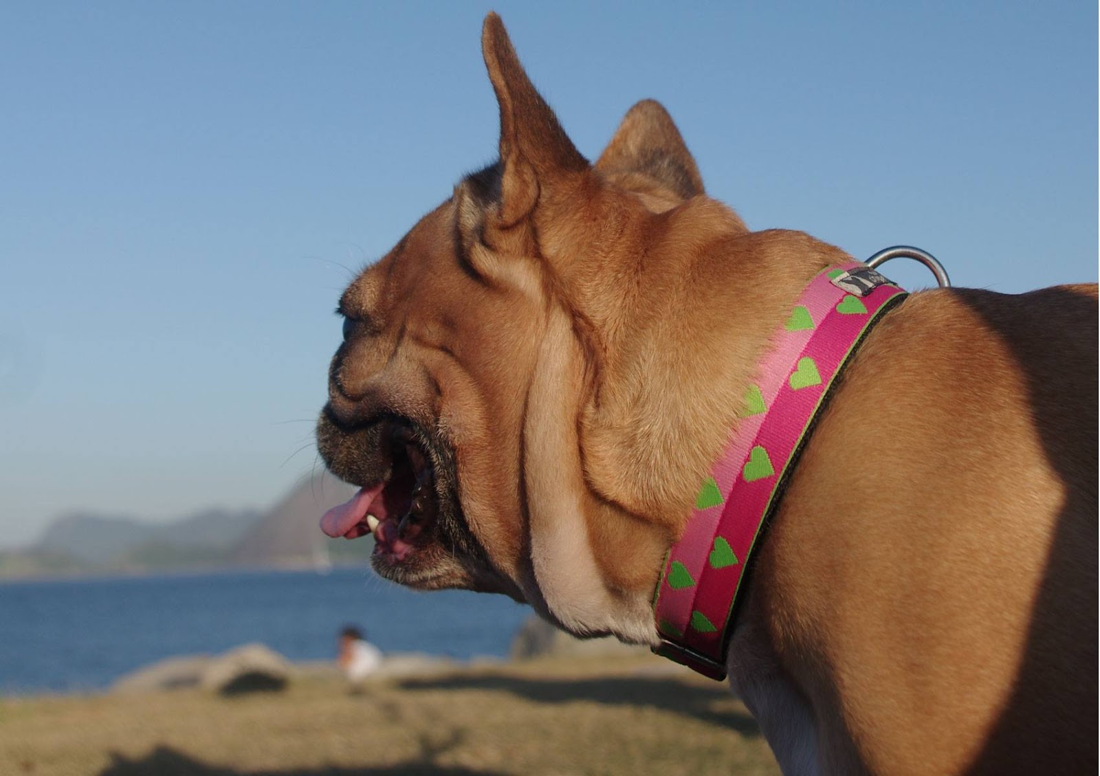 Pois entenda que, fazendo isso, você está ensinando seu buldogue francês que ele deve puxar para fazer você andar. Sem perceber, você está reforçando o péssimo hábito dele!